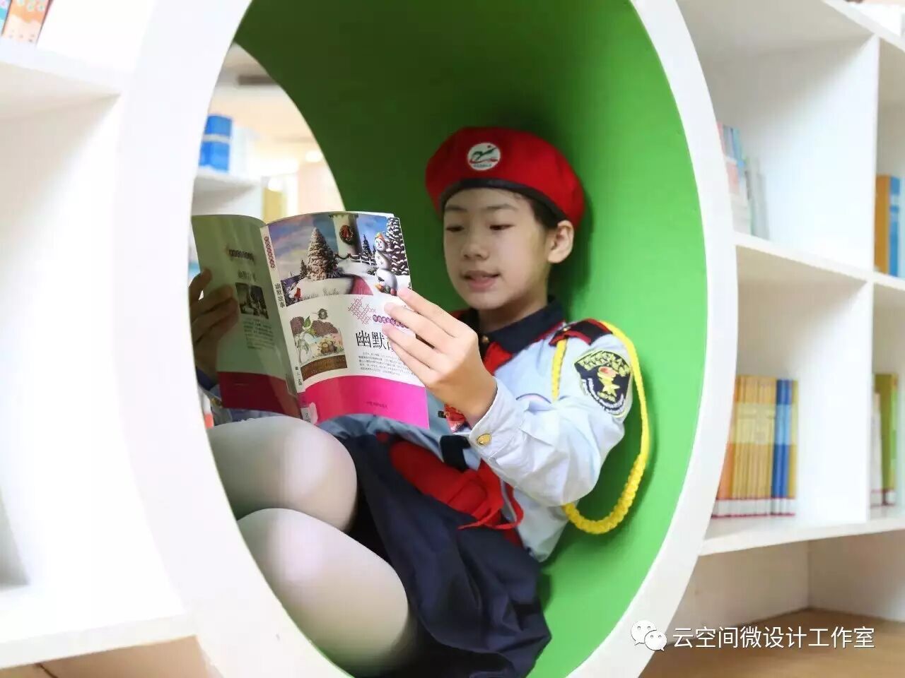 在为孩子开辟的区域里,低矮的书架,小小的书桌,分割安静的小隔间,再配上柔软的坐垫,为小读者们创造了舒适的阅读环境。在那里,孩子不需要正襟危坐,可以或坐或跪,或躺或趴,怎么舒服、怎么随意都可以。如此没有压力的“款待”,让孩子放松和愉悦,读书的成效也就显而易见了。