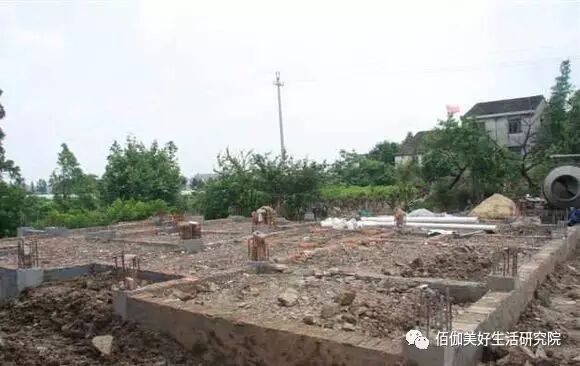 基础已经起来,钢筋按施工图来,没有按照村里施工队常用的数量。
