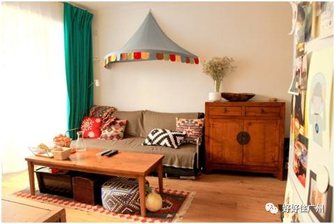 像是藤编的小容器,木质感的小抽屉,碗,好玩的灯具,绿色植物,一块羊毛地毯,都是给温馨加分的素材!
