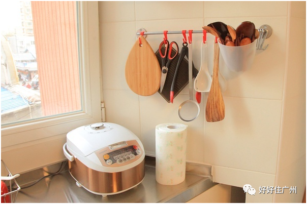 后来在缝隙中加了隔板,电饭煲放进去了~节约一些台面空间:)