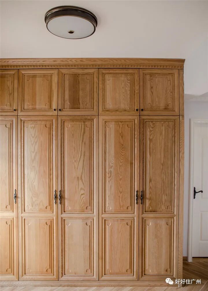 定制家具好坏全看细节,原木纹理和木蜡油亚光质感,搭配小铜扣拉手,接缝处很难察觉,说明设计和做工都十分优秀。