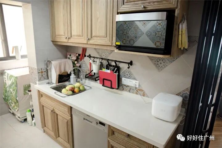 另一边较高主要是考虑水槽洗碗,常规高80的水槽,以Fancy的身高,用起来腰酸背痛,高90的则好很多。