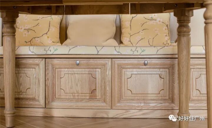 飘窗台有些高,前面加了一级台阶,后来发现,大家竟然最喜欢坐在台阶上。台阶也做成抽屉增加收纳。