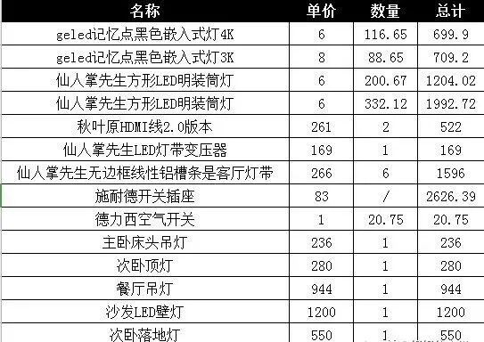 最后装完发现花了有61W+,的确有点惊讶没控制好预算(身为财务表示很惭愧)我简单的做了个支出表↓