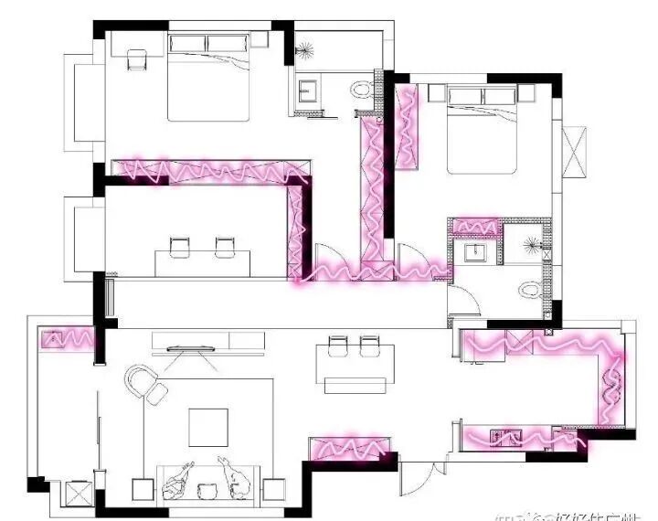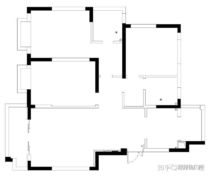 客卫空间相应扩宽,干湿区合并,利用新砌墙体的凹凸,