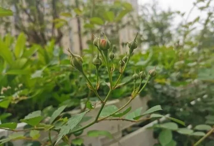 蔷薇花墙含苞待放,花苞发了一大堆,